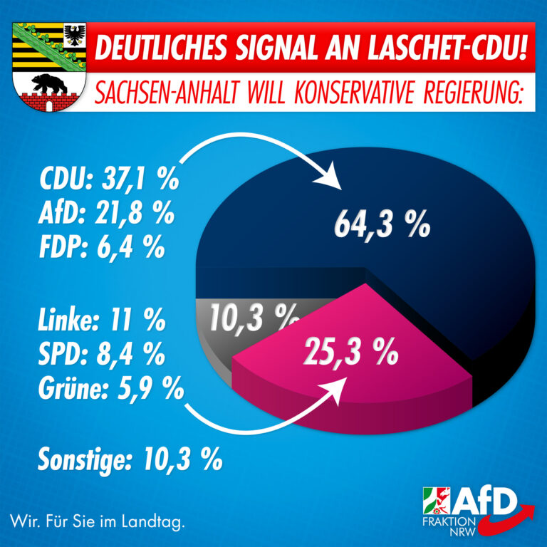 Mit Leichtigkeit haben CDU und AfD in Sachsen-Anhalt die absolute Mehrheit eingefahren. Zusammen mit der FDP ergibt sich sogar ein Stimmanteil von 64 Prozent!
