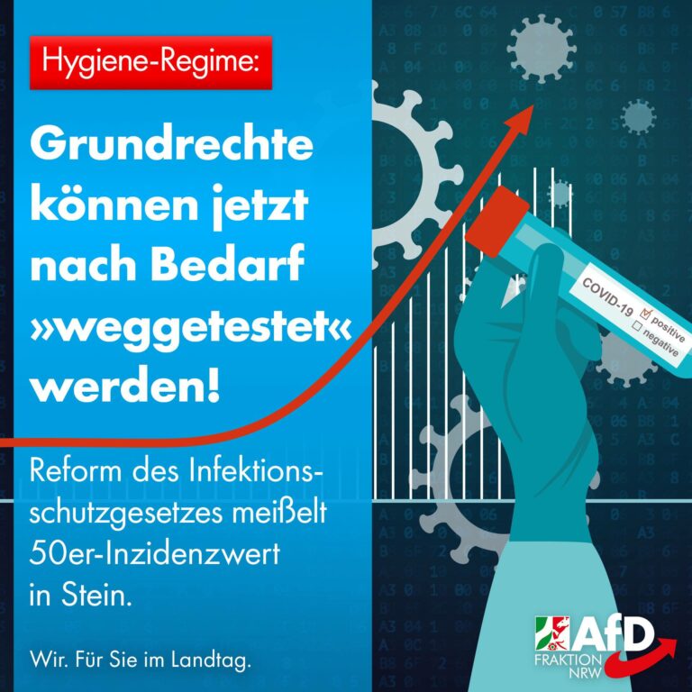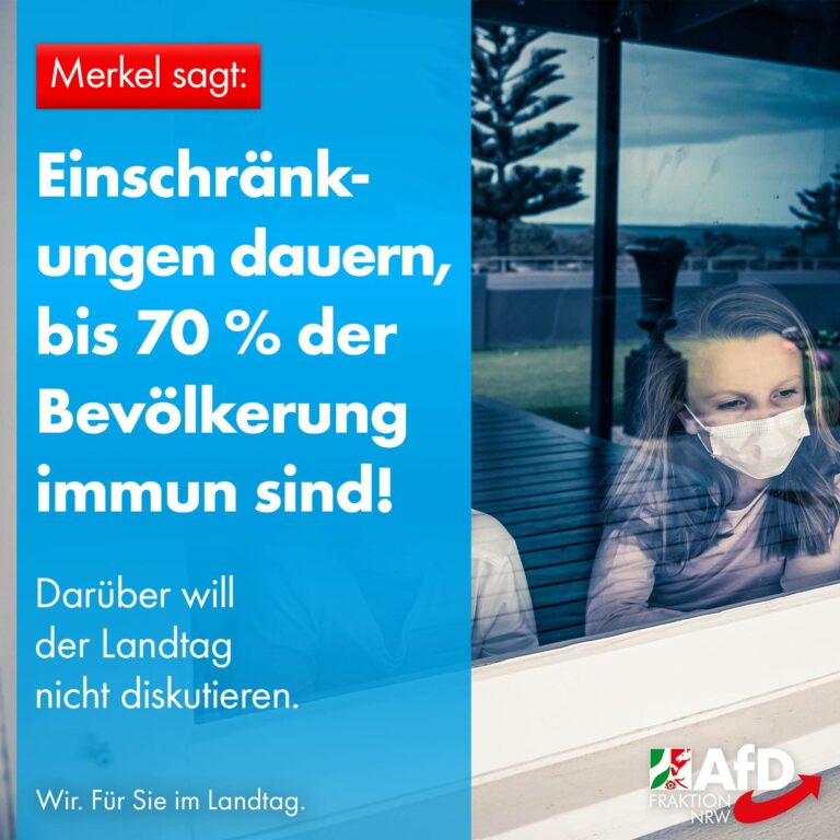 Als einzige Kraft im Landtag widersetzt sich die AfD-Fraktion NRW dem Hygiene-Regime. Nein zu Kontrollstaat, Angst und Hörigkeit! Ja zu Rechtsstaat, Freiheit und Vernunft!
