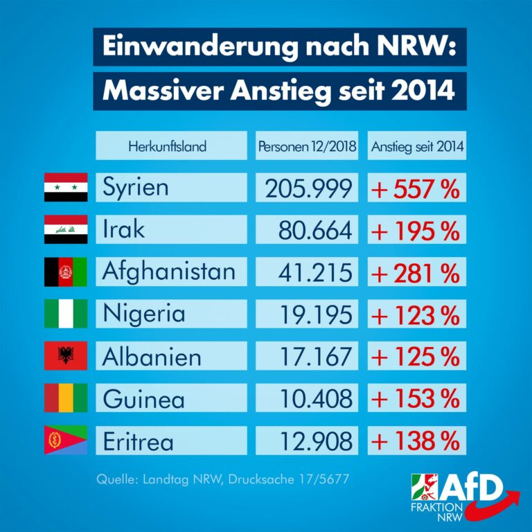 Verdoppelt, verdreifacht, vervierfacht: In nur vier Jahren hat sich die Einwanderung aus vielen Ländern nach NRW enorm verstärkt. Mit dabei ist auch ein eigentlich sicheres