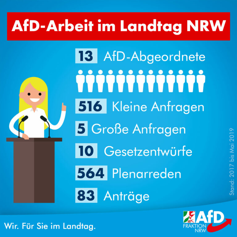 Mit 13 Abgeordneten ist die AfD die aktuell noch kleinste Oppositionsfraktion im NRW-Landtag. In Sachen „parlamentarische Arbeit“ stehen wir den Altparteien aber nicht nur in