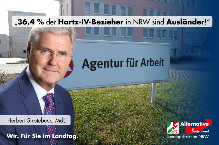 Herbert Strotebeck (Kreis Mettmann) von der AfD-Fraktion im Landtag Nordrhein-Westfalen wollte von der Landesregierung wissen, wie sich der Anteil der ausländischen Staatsangehörigen unter den Hartz-IV-Beziehern
