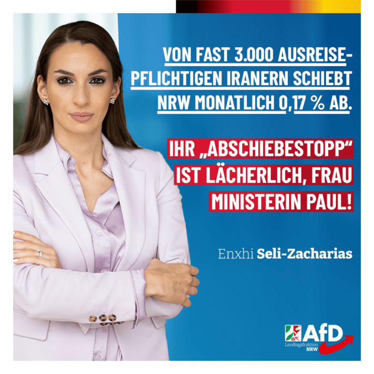 Mit großer Geste verhängte Ministerin Josefine Paul (Grüne) einen „Abschiebestopp“ in den Iran. In NRW leben 2.875 ausreisepflichtige Iraner. Von Januar bis Juli wurden monatlich aber nur fünf (!) Iraner rückgeführt, also monatlich 0,17% aller Ausreisepflichtigen.