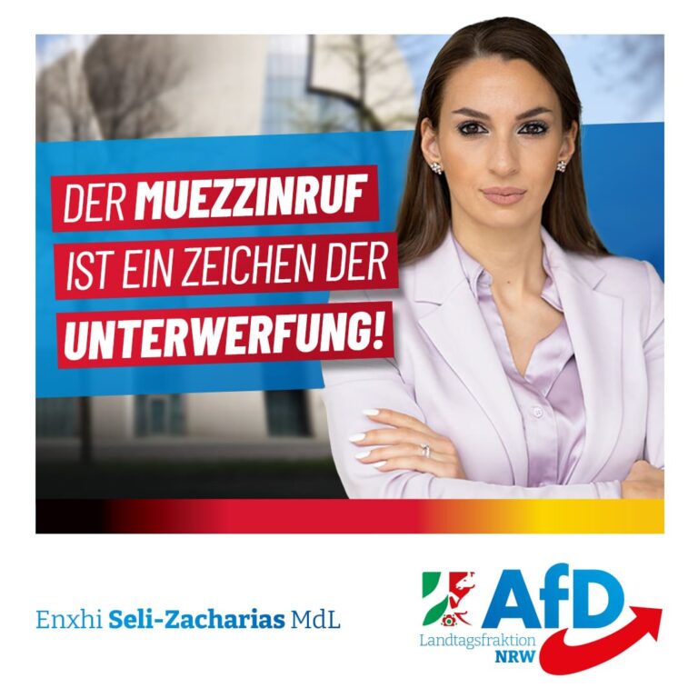 Als AfD wenden wir uns als einzige Fraktion strikt gegen den lautsprecherverstärkten öffentlichen Muezzinruf. Damit wollen wir das Wohlbefinden aller Bürger schützen. Der Muezzinruf stellt eine psychische Belastung dar, gefährdet den sozialen Frieden im betroffenen Stadtviertel und sorgt als Nebeneffekt für eine Niedrigbewertung von Immobilien im direkten Umkreis.