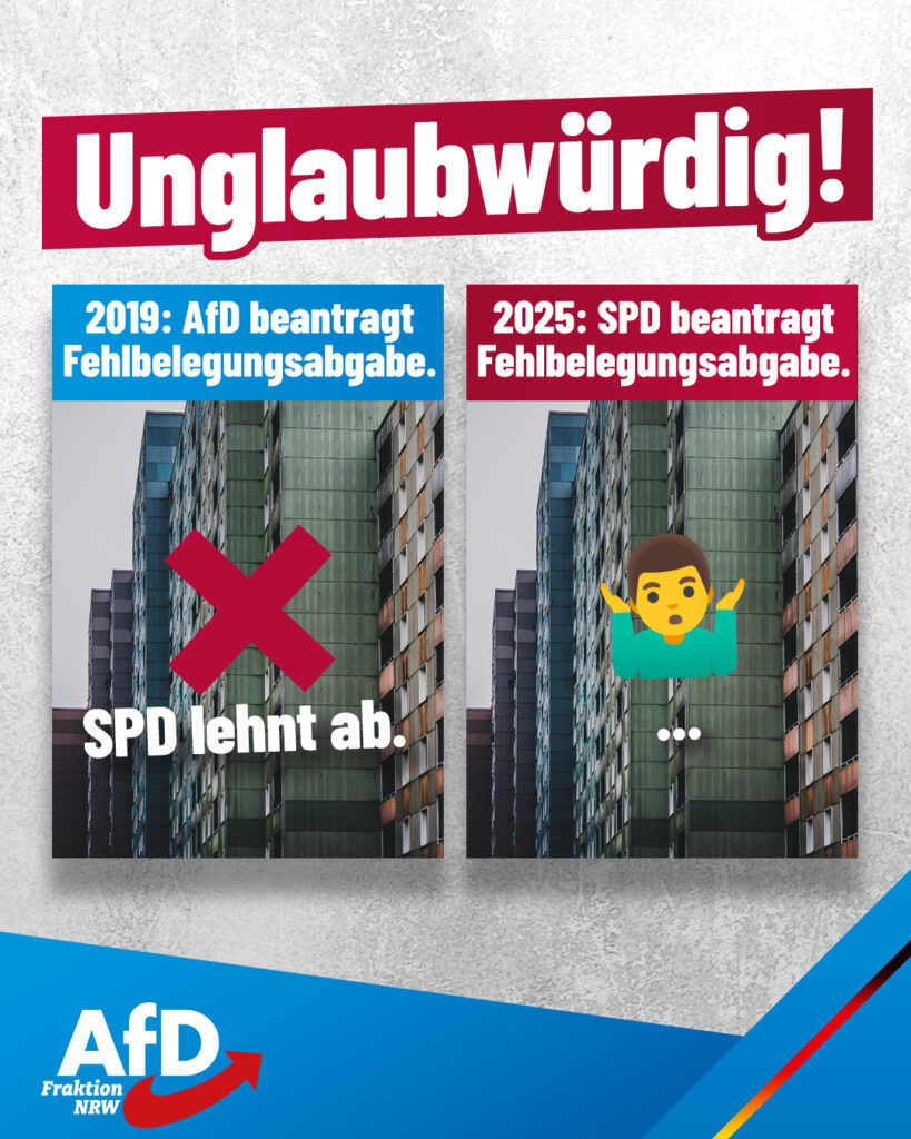 „Was hier in den Medien als eigene Idee der SPD-Bauministerin verkauft wird, ist im Grunde genommen nur die Kopie unseres Antrags im NRW-Landtag (Drs. 17/6268) aus dem Jahr 2019. Seinerzeit wurde dieser übrigens mit den Stimmen der SPD im Ausschuss für Heimat, Kommunales, Bauen und Wohnen abgelehnt.