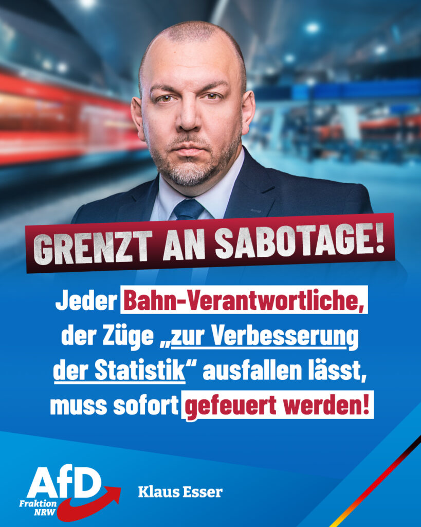 „Wir erwarten vom neuen Bahn-Management die Entlassung aller für diesen Skandal verantwortlichen Mitarbeiter sowie eine umgehende interne Aufarbeitung. Pünktliche Züge im Nah- wie auch im Fernverkehr haben für uns absolute Priorität“, so Esser.