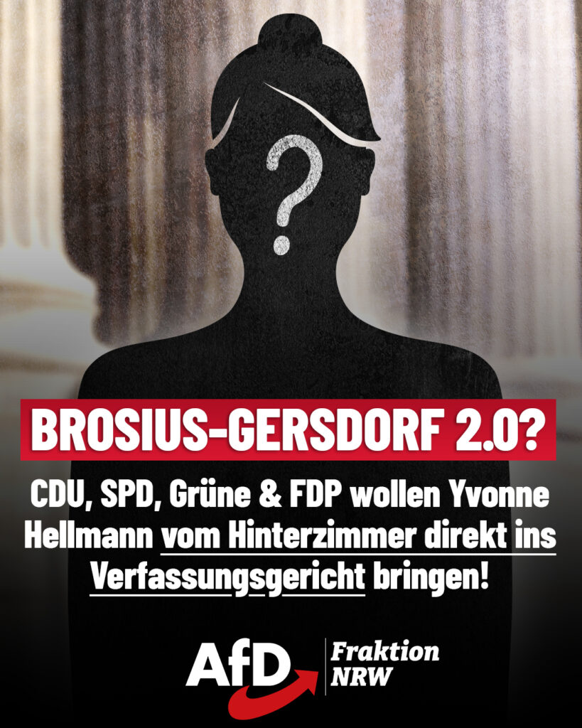 CDU, SPD, Grüne und FDP wollen Yvonne Hellmann vom Hinterzimmer direkt ins Verfassungsgericht bringen. Das ist unredlich, undemokratisch und nimmt uns sowie den Wählern, deren Interessen wir vertreten, die Möglichkeit, kritische Fragen überhaupt erst zu stellen. Die AfD-Fraktion lehnt die Wahl von Frau Hellmann daher entschieden ab.“