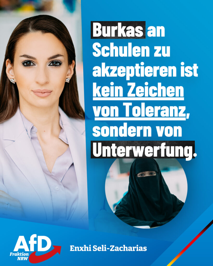 Auch in Schulen werden islamistische Strukturen und Verhaltensweisen zum Alltag, wenn wir nicht konsequent gegensteuern, warnt Enxhi Seli-Zacharias, migrationspolitische Sprecherin der AfD-Fraktion NRW: